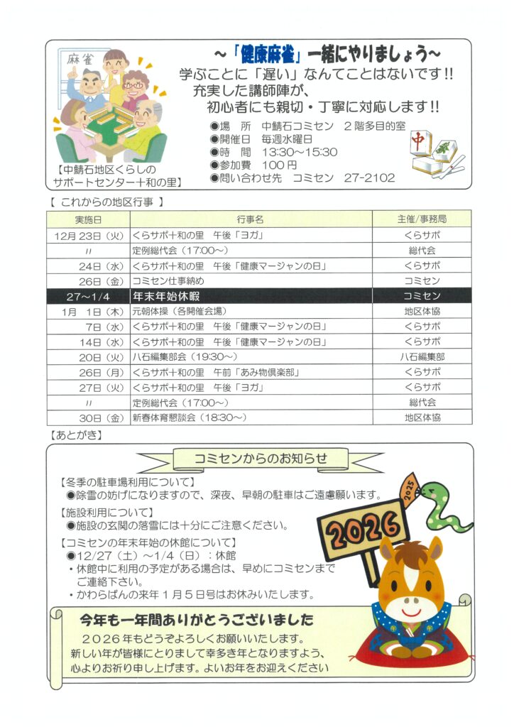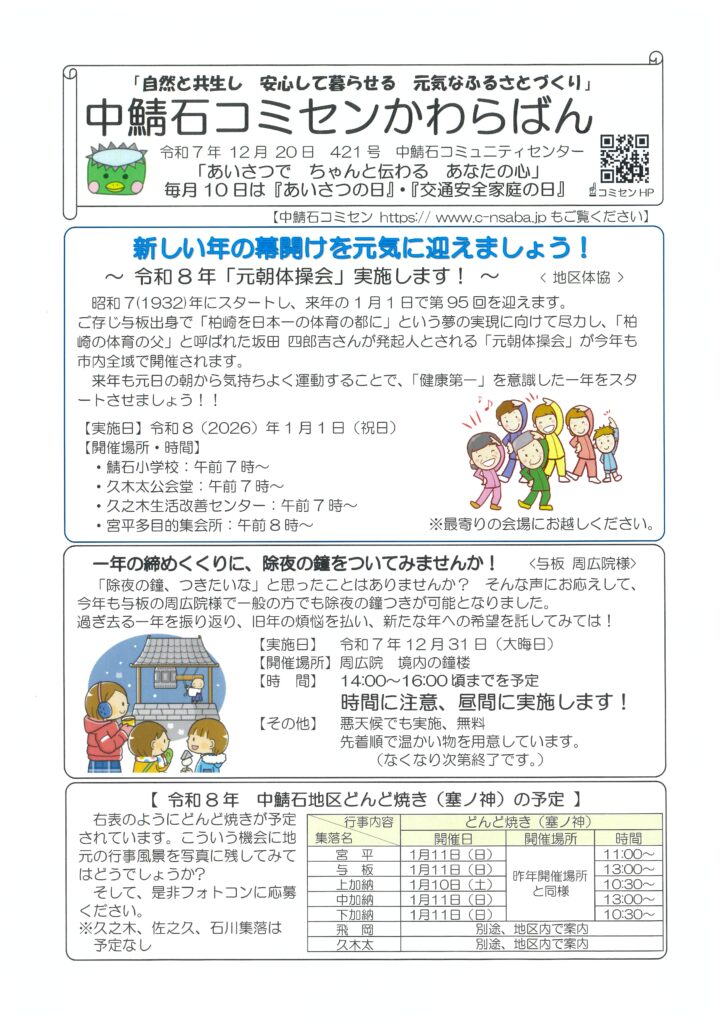 中鯖石コミセンかわらばん 421号発行いたしました。