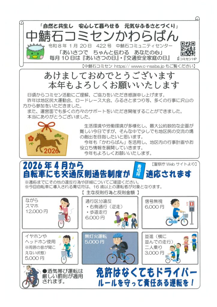 中鯖石コミセンかわらばん 422号発行いたしました。