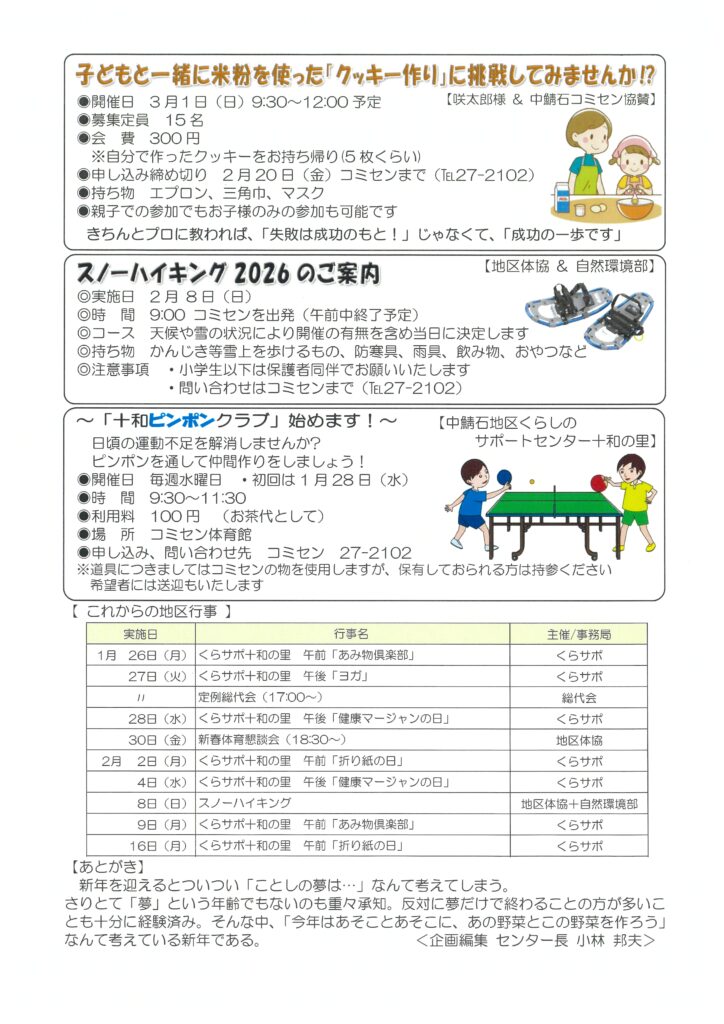 コミセンからのお知らせ