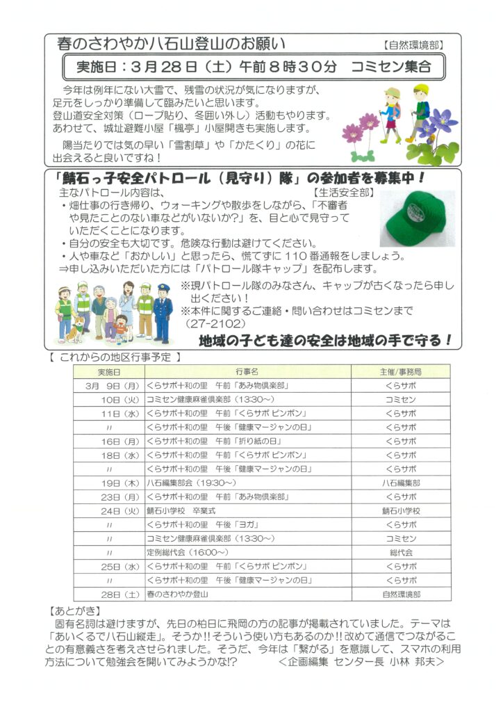 中鯖石コミセンかわらばん 425号発行いたしました。