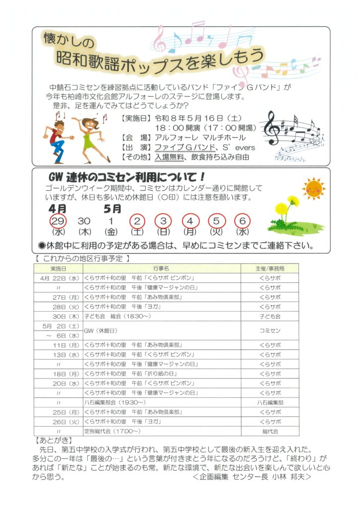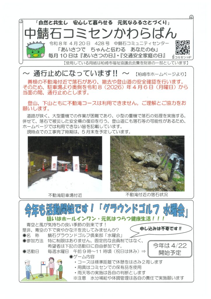 中鯖石コミセンかわらばん 428号発行いたしました。